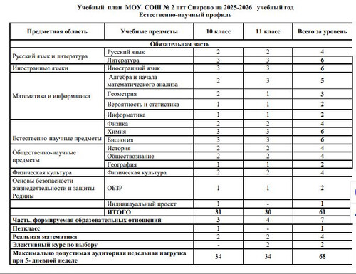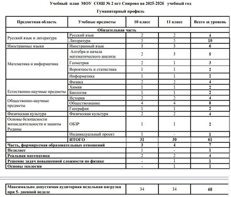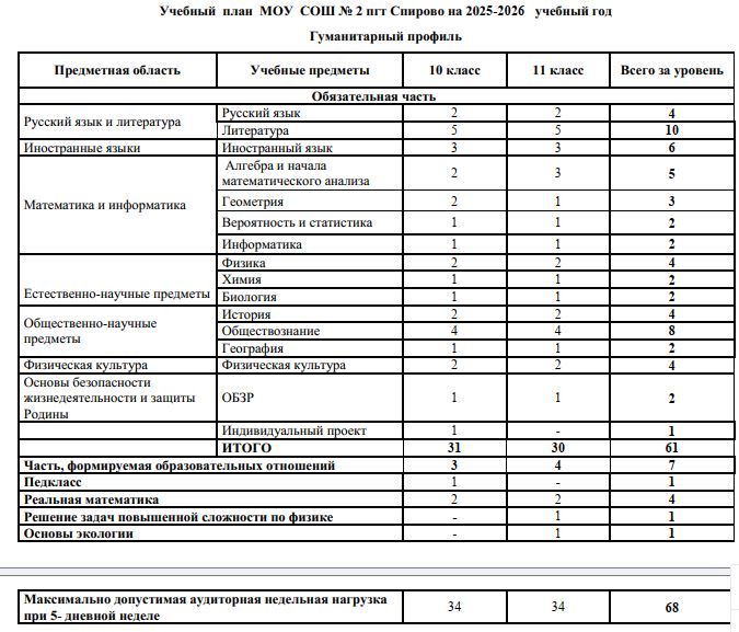 УЧЕБНЫЙ ПЛАН СРЕДНЕГО ОБЩЕГО ОБРАЗОВАНИЯ