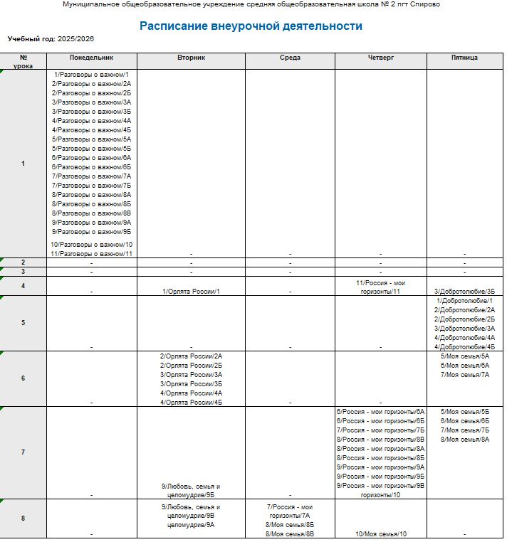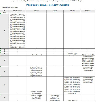Расписание внеурочной деятельности на 2025-2026 учебный год
