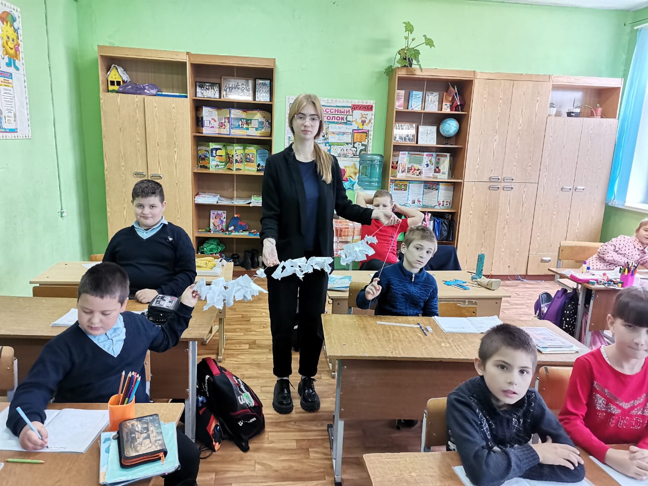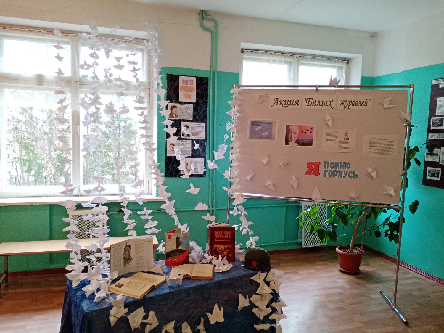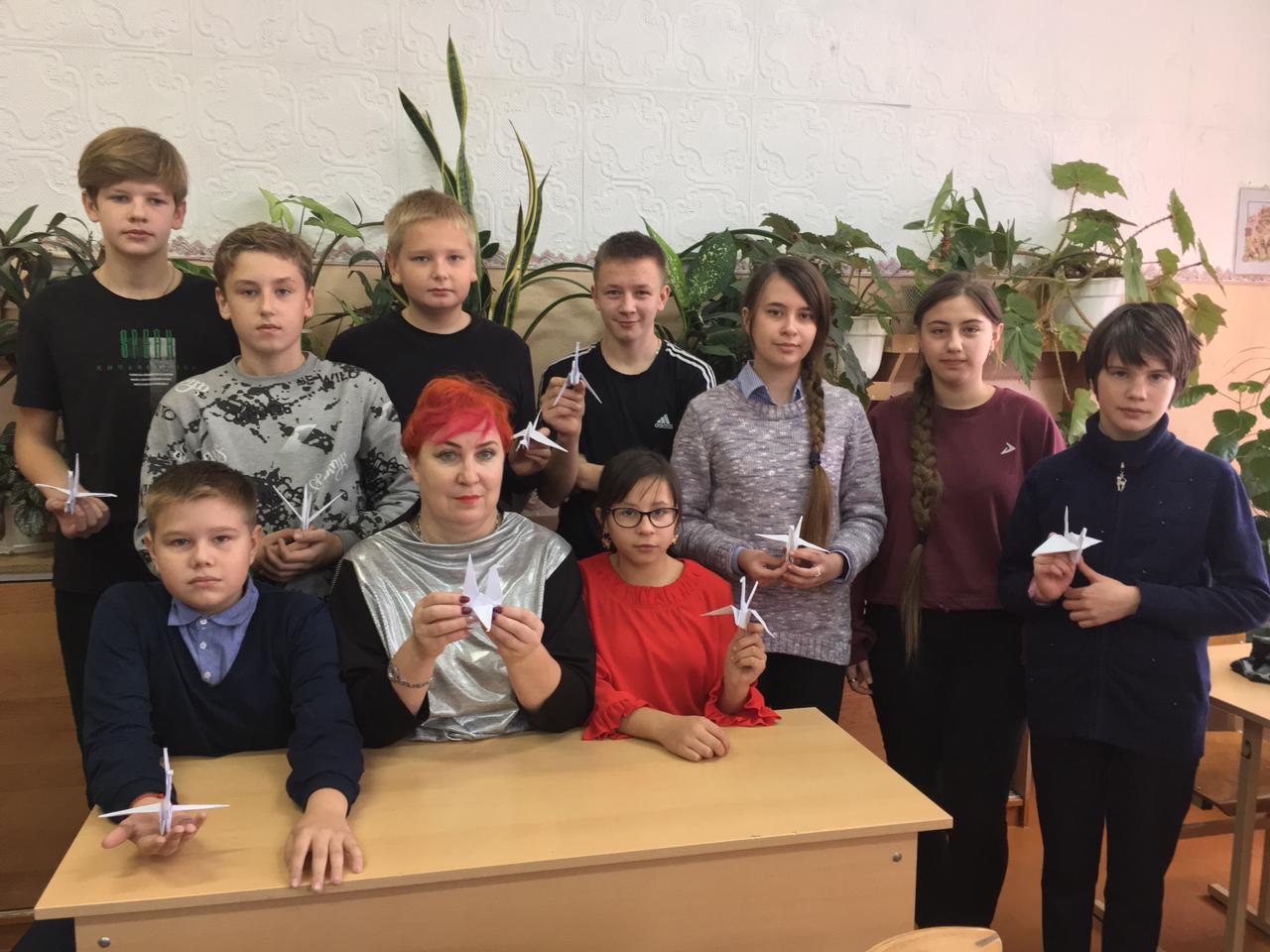 Ежегодно 22 октября отмечают День белых журавлей, посвященный памяти солдат, погибших за Родину. Такое поэтическое название появилось благодаря одноименному стихотворению Расула Гамзатова «Журавли». Предпосылкой к написанию такого патриотического произведения, в котором гордые птицы являются олицетворением павших на поле боя солдат, стала поездка Расула Гамзатова в японский город Хиросиму после окончания Второй мировой войны. Там 6 августа 1945 года американцы нанесли по японскому народу мощный ядерный удар, воспользовавшись чудовищным оружием — атомной бомбой. Тысячи жителей, в том числе и дети, оказались жертвами лучевой болезни. История одной такой обреченной девочки по имени Садако облетела всю планету, поразив каждого до глубины души. Маленькая Садако, терзаемая невыносимыми физическими страданиями, несмотря ни на что, верила в исцеление. И помогала ей в этом одна очень красивая сказка, в которой рассказывалось о том, что если сложить из бумаги тысячу фигурок журавлей, можно рассчитывать на исполнение заветного желания. А желание у больной девочки было только одно: поскорее выздороветь. Мечта Садако стала мечтой тысячи людей со всех стран мира. Но болезнь оказалась сильнее. Маленькой японской девочке удалось собрать только 644 бумажных символа. Она умерла, а дети из разных стран мира, глубоко сочувствуя ей и миллионам обреченных, до сих пор присылают в мемориал Мира в Хиросиме тысячи журавликов с надеждой на мир во всем мире. Этих журавликов складывают в большие стеклянные ящики, расположенные вокруг памятника Садако. В нашей школе в рамках акции были проведены различные мероприятия. Так, юнармейский отряд школы принял участие в торжественном митинге в урочище Бобово. Для обучающихся школы классными руководителями были проведены классные часы об истории возникновения патриотической акции. Совет старшеклассников также не остался в стороне: ребята рассказали ученикам 1 – 11 классов историю возникновения традиции этого праздника, провели мастер-классы по изготовлению журавликов и помогли оформить информационный стенд.