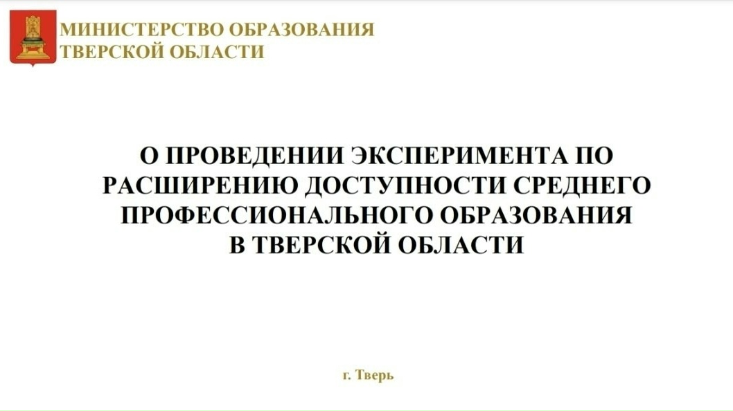 В 2026 году Тверская область участвует в эксперименте по расширению доступности среднего профессионального образования. Планируется, что эксперимент продлится до 2029 года.
