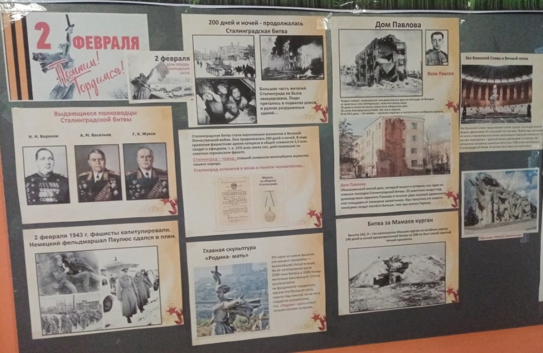 2 февраля отмечается День воинской славы - День разгрома советскими войсками немецко-фашистских войск в Сталинградской битве. 200 дней и ночей продолжалась Сталинградская битва, ставшая переломным моментом в Великой Отечественной войне. | |
