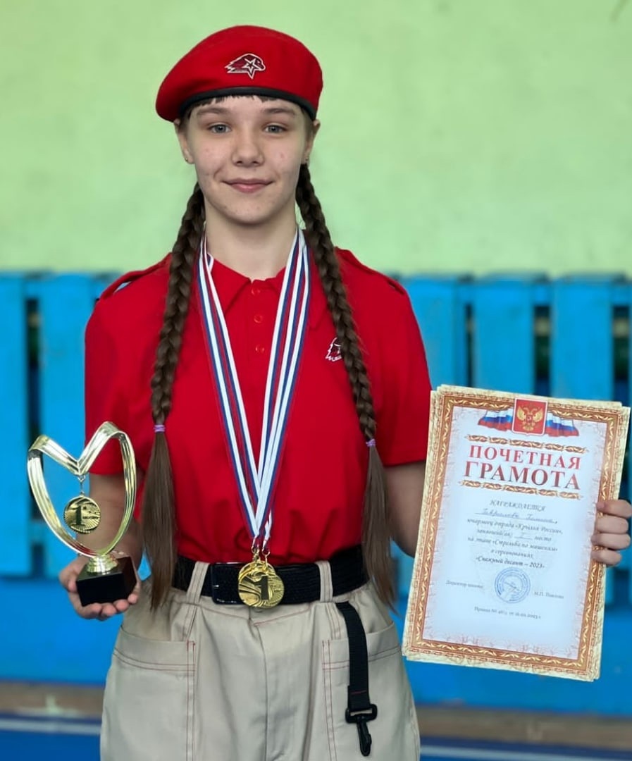 Гаврилова Полина, юнармеец нашей школы, достойно приняла участие в конкурсе "Юнармейская краса Верхневолжья-2023". Она заняла 2 место в номинации "Визитка", а также стала победителем в номинации "Сильная, смелая, ловкая". | |