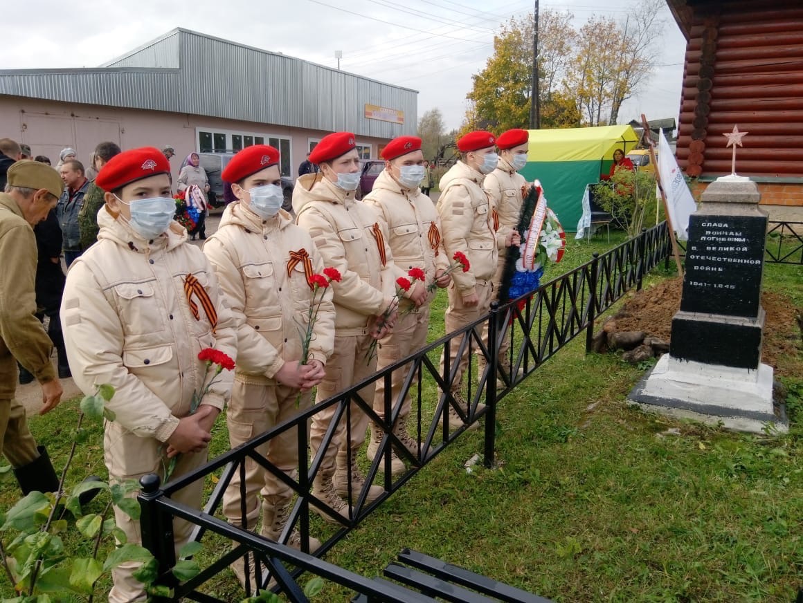 7 октября наши юнармейцы вместе с директором школы Павловой М.П. приняли участие в траурной церемонии захоронения останков летчиков, погибших во время Великой Отечественной войны и обнаруженных во время поисковых работ. Проходила эта церемония на территории Краснознаменского сельского поселения в д.Бирючево. 22 октября 1941 года четыре советских самолета дальней боевой авиации вылетели с боевой задачей уничтожить самолеты противника на аэродроме г.Калинин. В двух километрах от деревни Бирючево один самолет был сбит немецкими летчиками Люфтваффе. В 1955 году жители деревни нашли тело летчика. в кармане гимнастерки был комсомольский билет на имя Горбунова Тимофея Михайловича/ Героя войны с почестями похоронили в центре д.Бирючево. Со слов Александры Михайловны Романовой, уроженки деревни, в сбитом самолете находились еще 3 члена экипажа. Летом 2020 года поисковым отрядом "ИСТОК" из п.Калашниково под руководством Сергея Борисовича Сергеева велись поисковые работы на месте предполагаемого падения самолета. Члены отряда обнаружили останки трех летчиков. И теперь рядом с Т.М.Горбуновым будут покоиться командир экипажа младший лейтенант Шейн Николай Никифорович 1916 г.р., штурман лейтенант Фадеев Василий Егорович 1917 г.р. и стрелок-радист младший сержант Менис Исаак Матвеевич 1917 г.р. Гражданскую панихиду провел настоятель Георгиевского прихода с.Матвеево протоиерей Михаил Ивлев. После окончания панихиды с соблюдением воинских почестей останки были погребены | |
