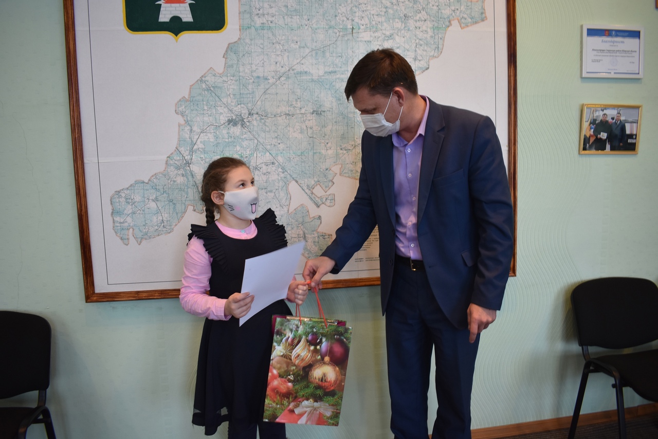 19 января Глава Спировского района Дмитрий Михайлов вручил талантливой и юной художнице, ученице школы № 2 Софье Перьковой, победительнице конкурса «Охрана труда глазами детей», диплом за первое место и памятный приз, поздравив и пожелав успехов в творческих начинаниях.