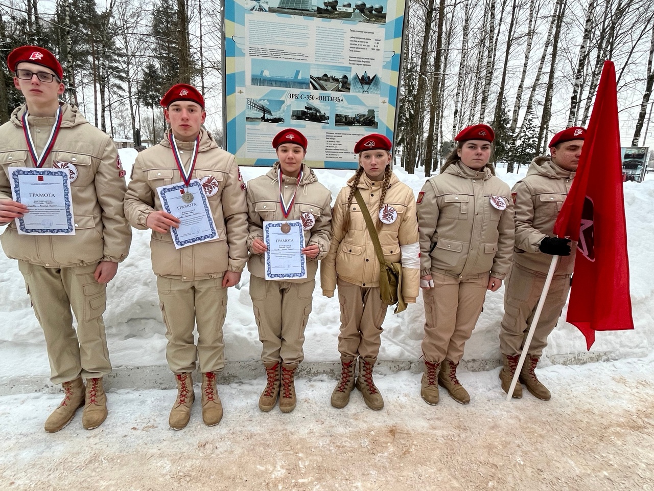 В состязаниях участвовало 19 команд из разных районов нашей области: Весьегонск, Лихославль, Ржев, Конаковский район, Кувшиново и, конечно, наши юнармейцы представляли Спировский муниципальный округ. Соперники были очень сильными, чувствовалось, что ребята участвуют не первый раз, имеют большой опыт. Наши же ребята в Твери на таком мероприятии были впервые. Многоборье было посвящено «35 – летию вывода советских войск из Афганистана». По теме Афганистана было дано домашнее задание, нарисовать боевой листок. Наши ребята рассказали в боевом листке о наших земляках, воевавших в Афганистане, их было 35 человек, а также мы рассказали о выпускнике нашей школы Белякове Юрии Ивановиче, который погиб при исполнении интернационального долга в Афганистане и за отвагу и мужество награжден «Орденом Красной звезды». | |